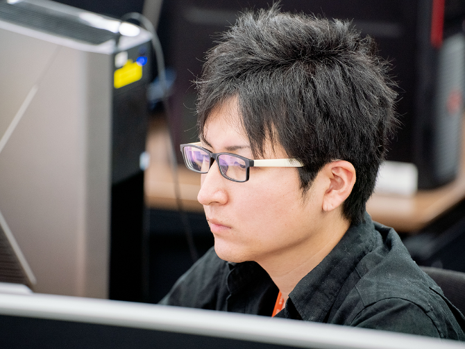 CG映像制作に8年間携わり、多くの業務やあらゆる制作を経験し、改めてデザイン業務でのキャリアを構築したいと思ったときにデザイン面での募集をされておりましたのがとても魅力的でありました。他にも今まで培った技術も生かせると感じたのもありますが、正直初めてお伺いした際に雰囲気が良いのが印象的で、大きな決め手になりました。