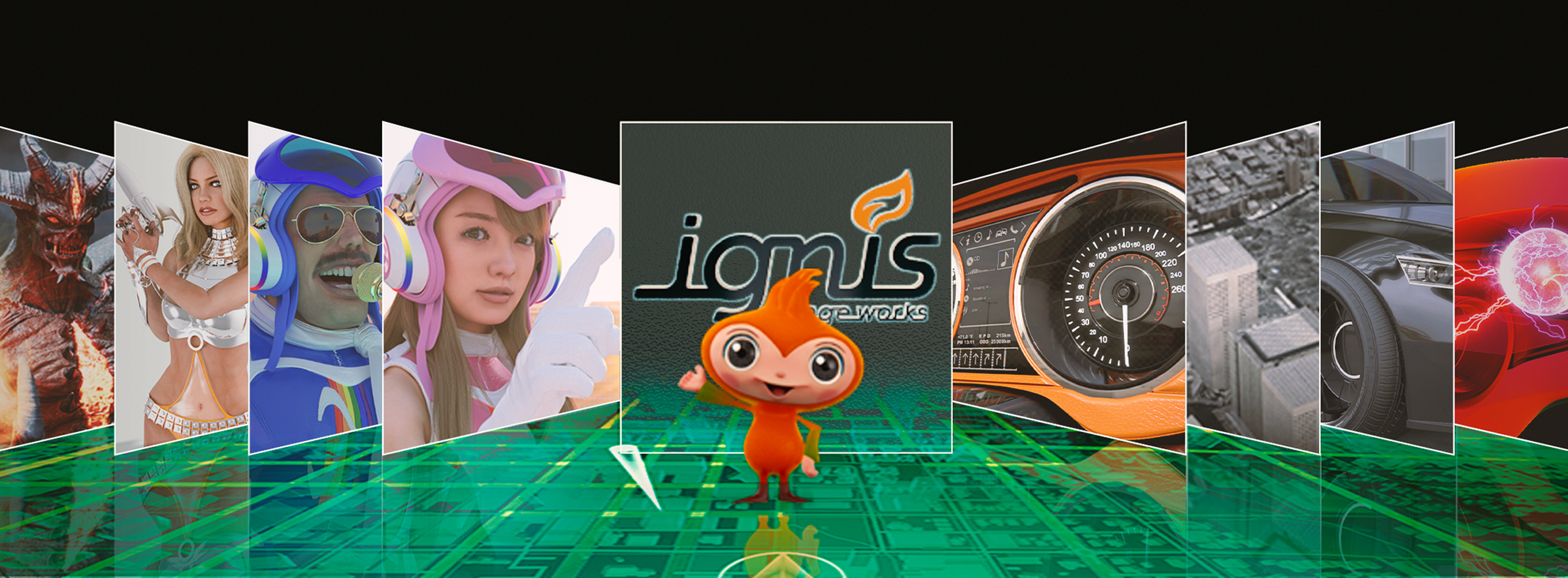 イグニス・イメージワークスは、発足以来プリレンダリングを主としてきたCG・映像制作集団です。リアルタイムのカットシーン制作や、ゲーム、VRコンテンツなどにおける各種モデル・モーションアセットの制作も多く手がけています。
